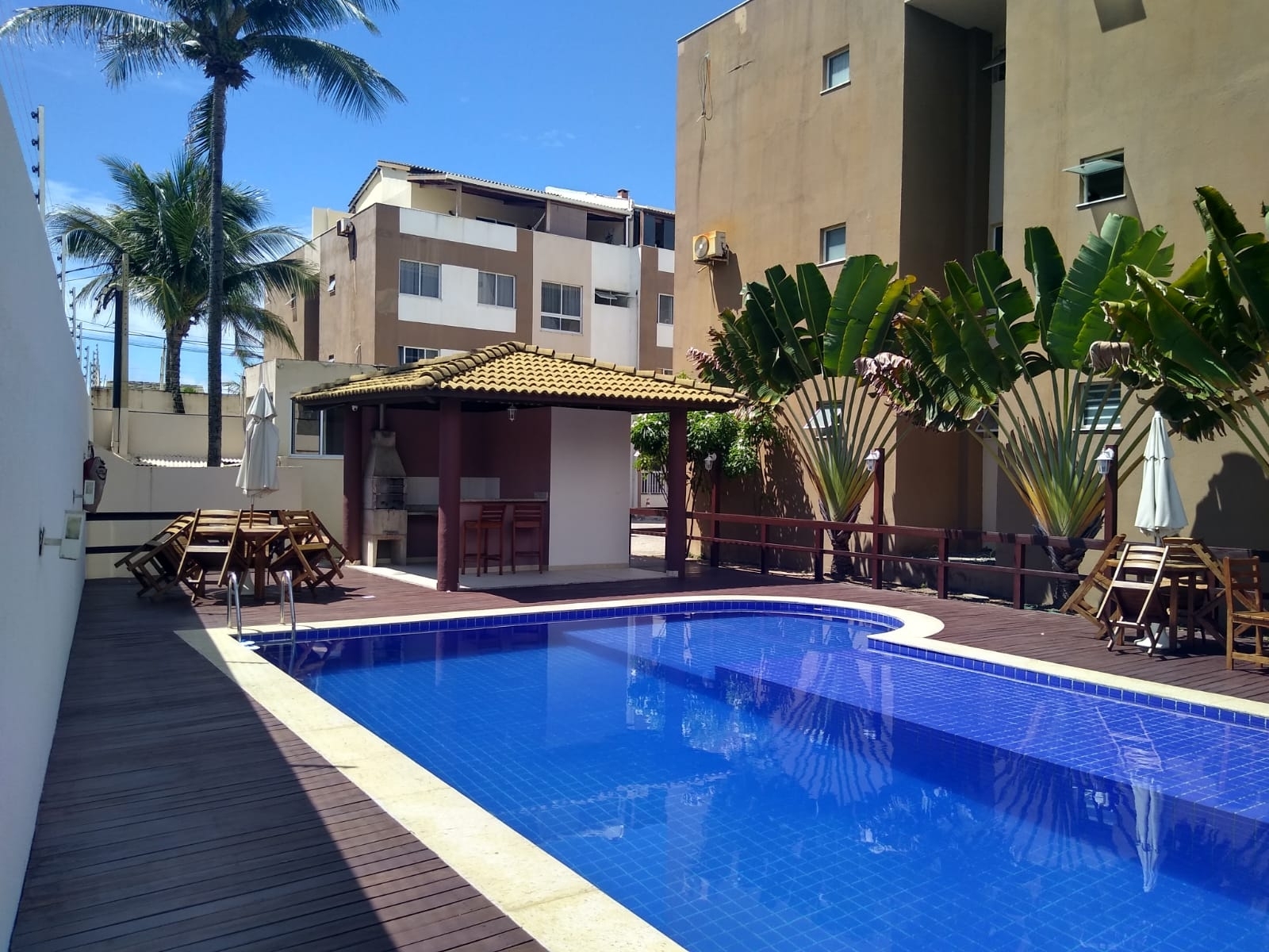 O condomínio é composto de salão de festas, churrasqueira e piscina e brinquedoteca