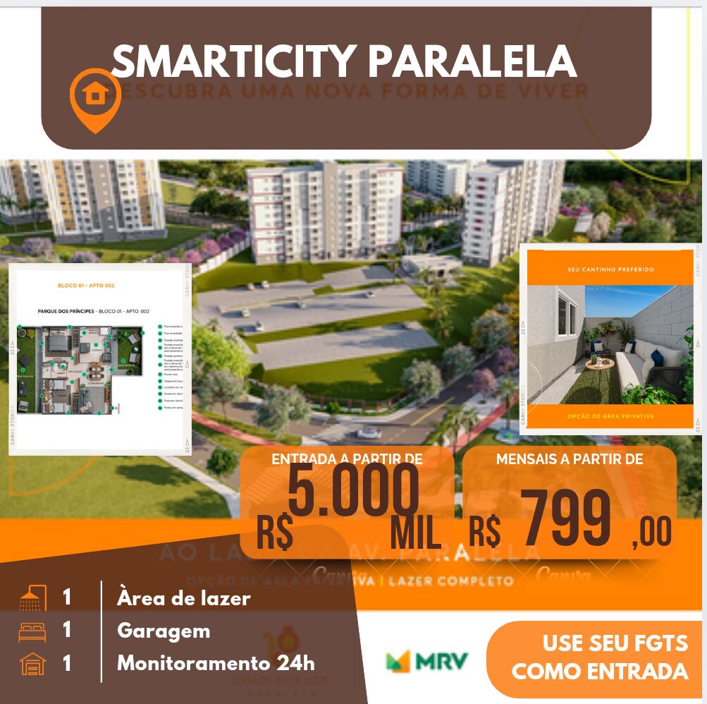 Chegou uma novo conceito de moradia ,samrtcidade mrv paralela complexo residencial inteligente que integra seustentabilidade , mobilidade ubrana e mais qualidade de vida ,localziado a 5 minutos da estaçã de metro , garanta já condições imperdiveis