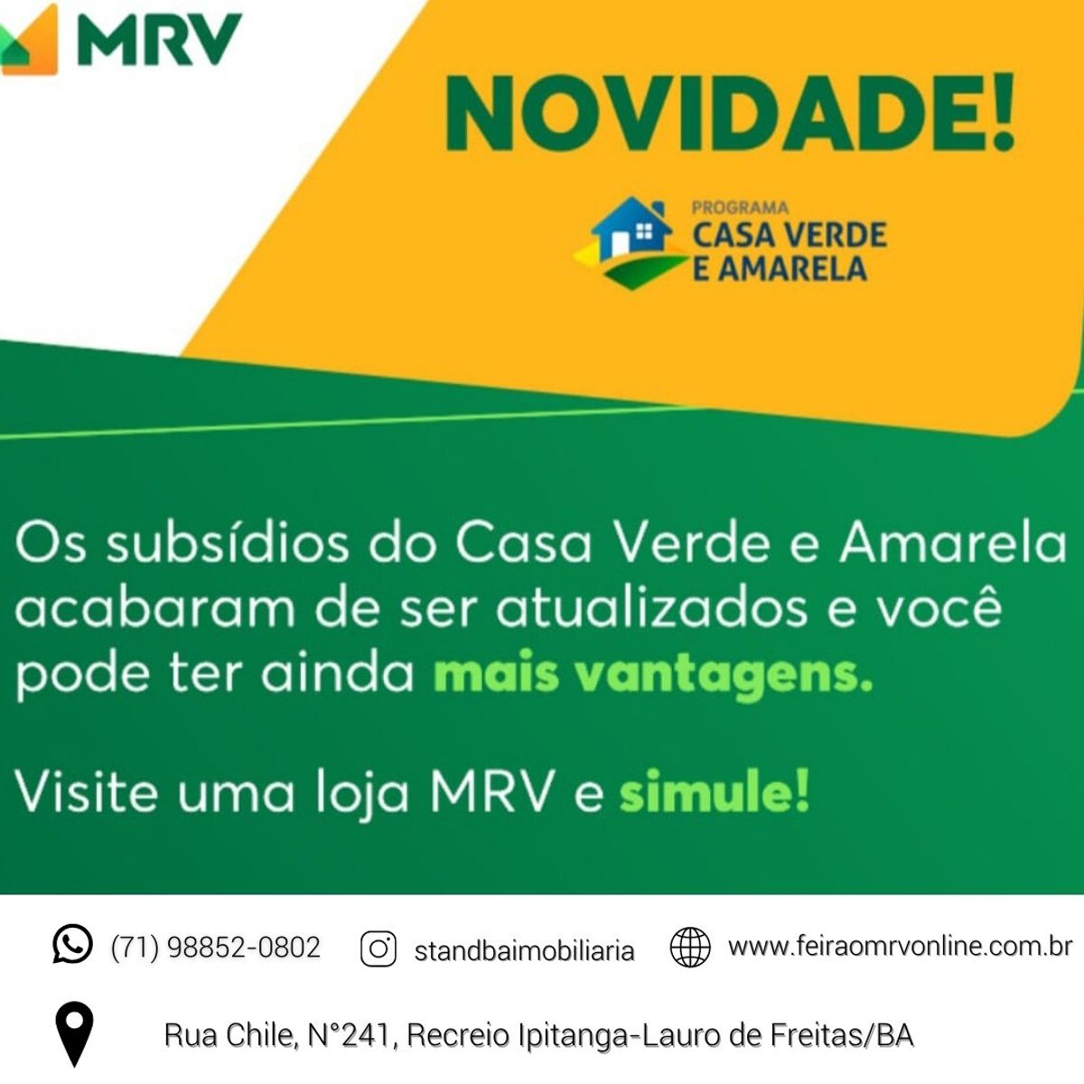 🔰 A Caixa junto com o programa Casa Verde Amarela aumentaram o Subsídio, melhorando ainda mais seu poder de compra para aquisição de sua casa 🏠 ou Apê 🏢 MRV 💚🧡